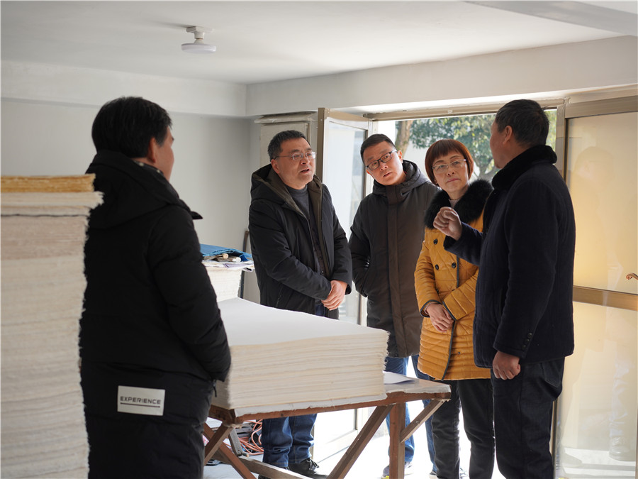 2021年1月26日,休寧縣政協(xié)主席儲(chǔ)曉華來公司調(diào)研徽州楮皮紙制作技藝傳承和發(fā)展情況。