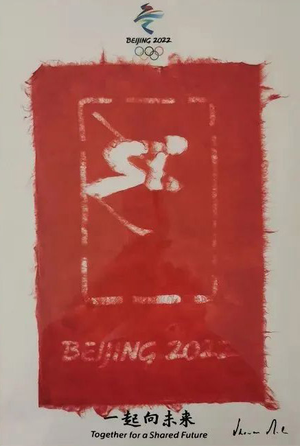 下圖便是使用徽州楮皮紙制作的北京冬奧會(huì)紙藝作品紀(jì)念品。一張厚實(shí)的白色襯紙上張貼著特別裁剪過(guò)的紅色襯紙,映出栩栩如生的高山滑雪樣式和“BEIJING 2022”字樣,十分高雅。
