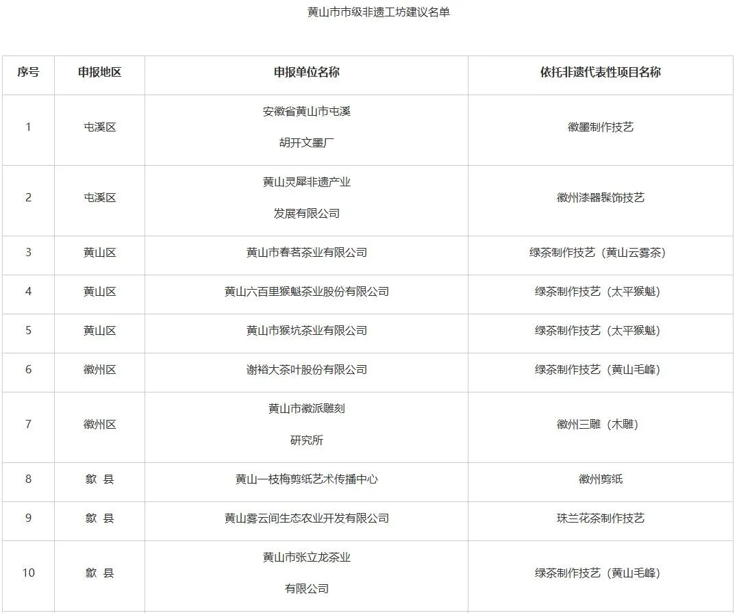 附件:黃山市市級非遺工坊建議名單
